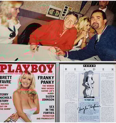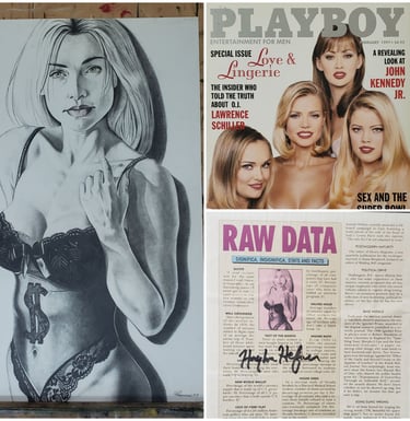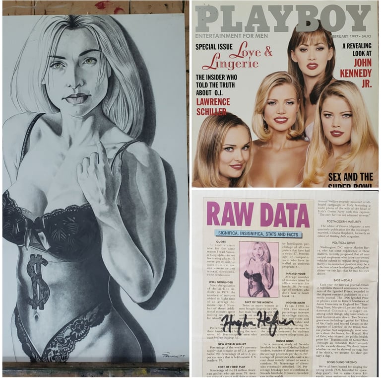 Sex in the Military article illustration commission. Hugh Hefner signing article .
