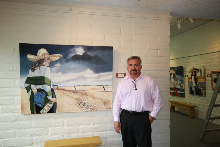 Luis Preciado is an artist best known for depicting the modern woman in the 1980's and 1990's. During the 80's his art was licensed in calendars, posters and beach towels. His acrylic originals and serigraphs were sold in galleries throughout the world. In the 90's he explored realism drawing glamorous women in black and white art and was commissioned by such magazines as Playboy. The beginning of 2000 saw Preciado venture into oil painting and continues painting in this medium to date. Luis Preciado was raised in Nogales, Arizona. Upon graduating from high school, he moved to southern California where he attended and graduated from the University of San Diego with a Fine Arts degree. He lived in San Diego for 25 years. He now lives in southern Arizona with his beautiful wife.