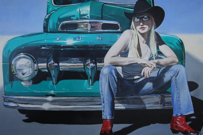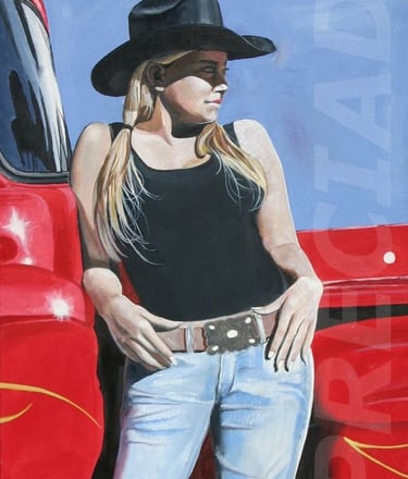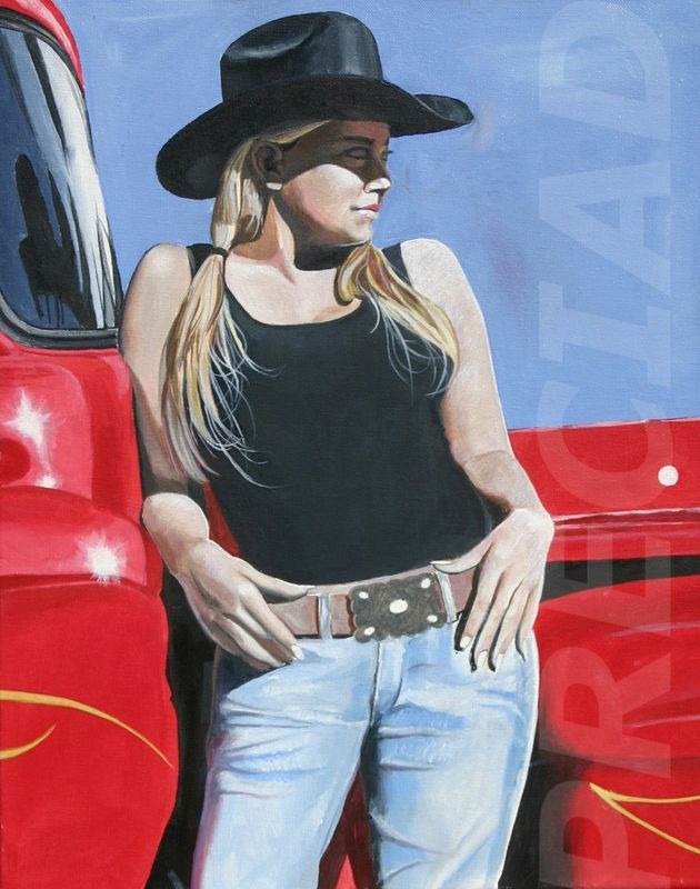 Cowgirl and Red Truck 24 x 30 Oil on canvas SOLD